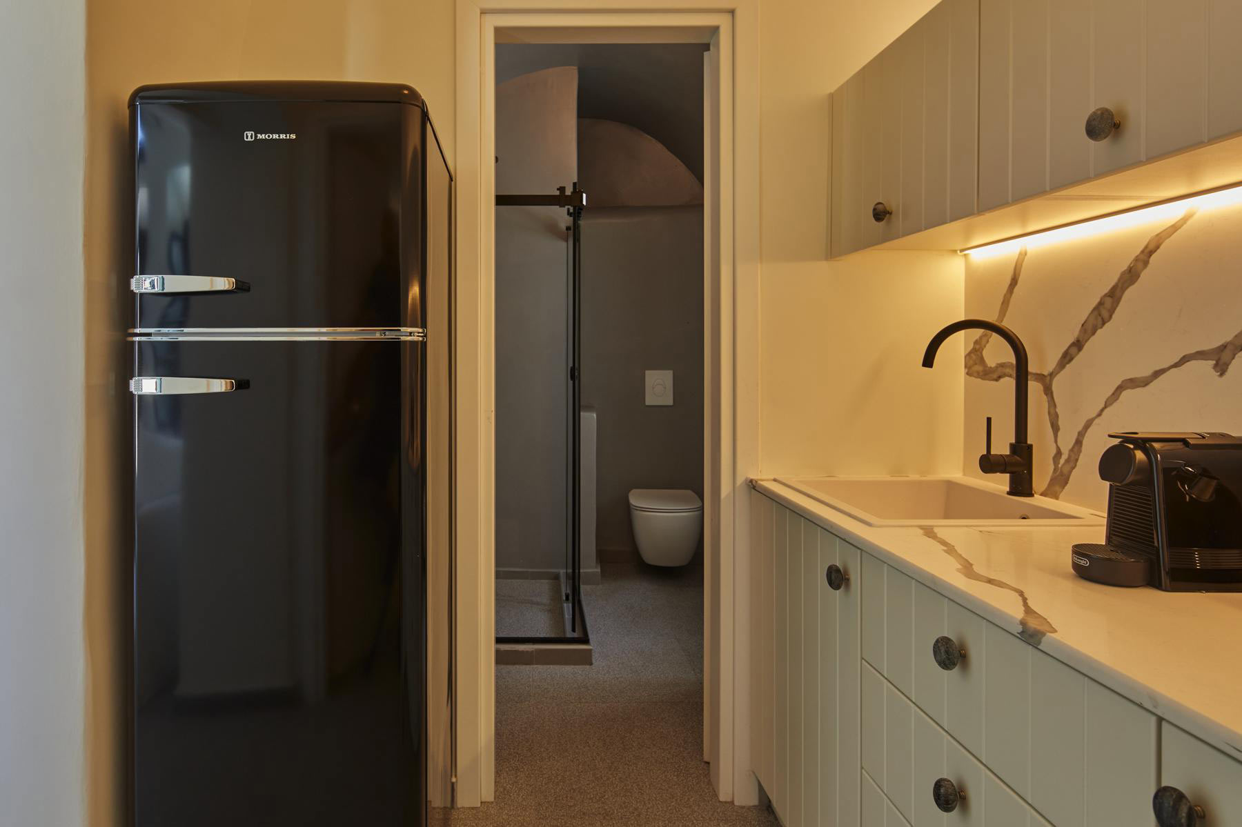 Combine the two separate spaces of Lerion Villa with Heated Hydromassage Tub and Lerion Traditional Cave for a welcoming accommodation proposal for up to six guests seeking privacy and comfort for their holiday stay. Three double bedrooms in total and convenient living amenities and a fully equipped kitchenette, together with a stunning terrace with a hot tub and sea view in an authentic Santorinian setting promise a memorable stay, boasting an idyllic and tranquil atmosphere in harmony with the quaint locale.