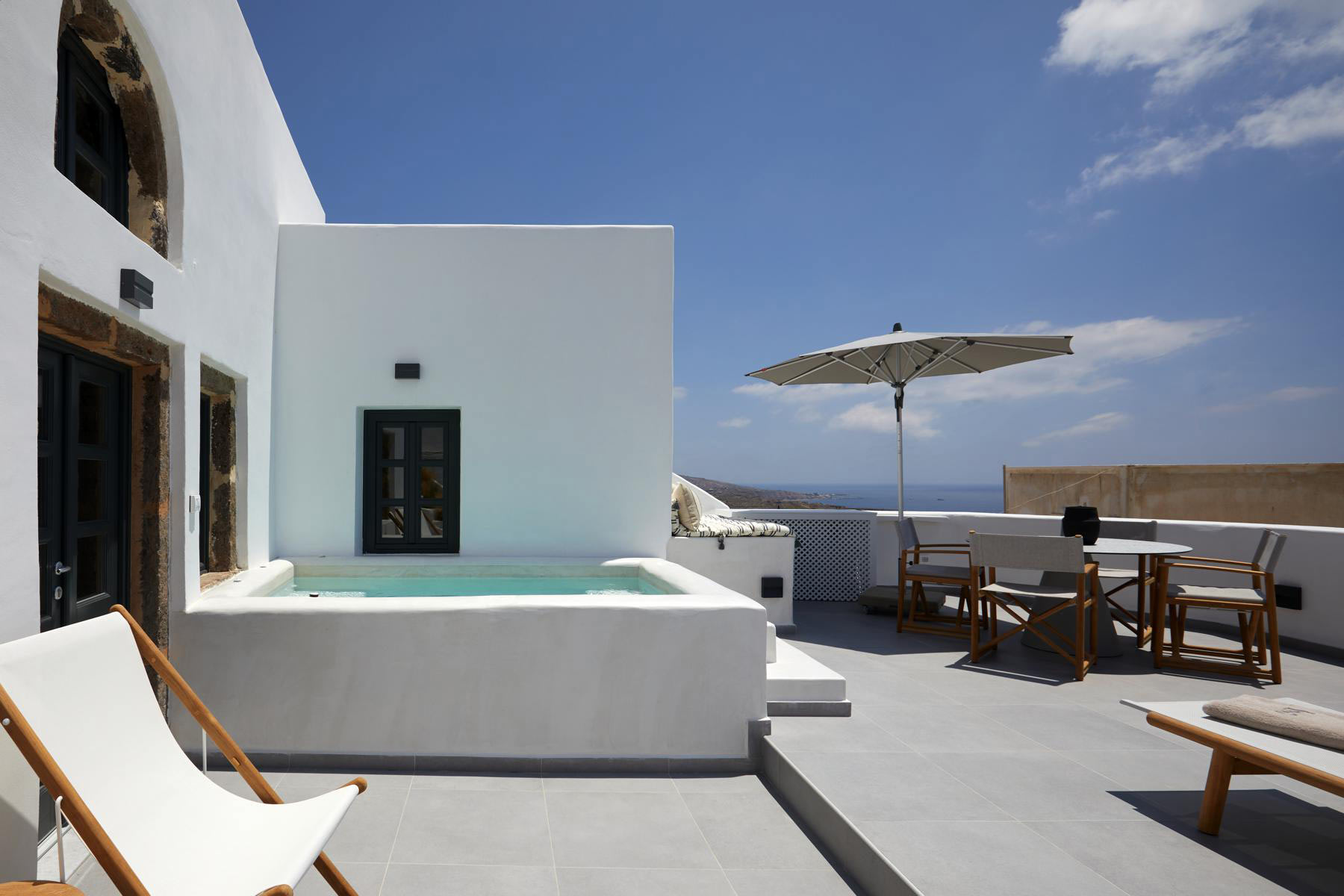 - Outdoor terrace with seating and sea view