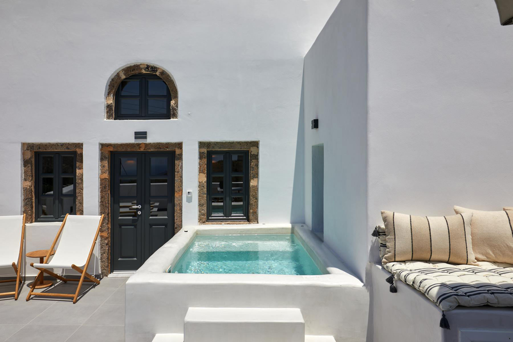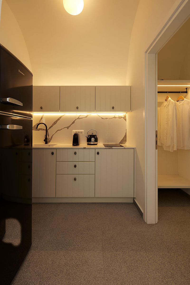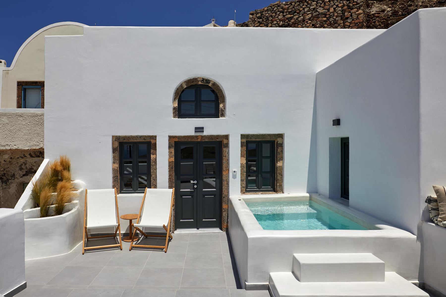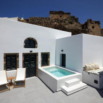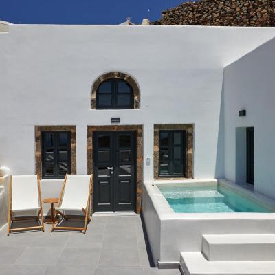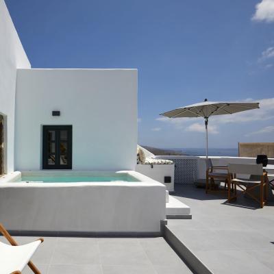 Combine the two separate spaces of Lerion Villa with Heated Hydromassage Tub and Lerion Traditional Cave for a welcoming accommodation proposal for up to six guests seeking privacy and comfort for their holiday stay. Three double bedrooms in total and convenient living amenities and a fully equipped kitchenette, together with a stunning terrace with a hot tub and sea view in an authentic Santorinian setting promise a memorable stay, boasting an idyllic and tranquil atmosphere in harmony with the quaint locale.