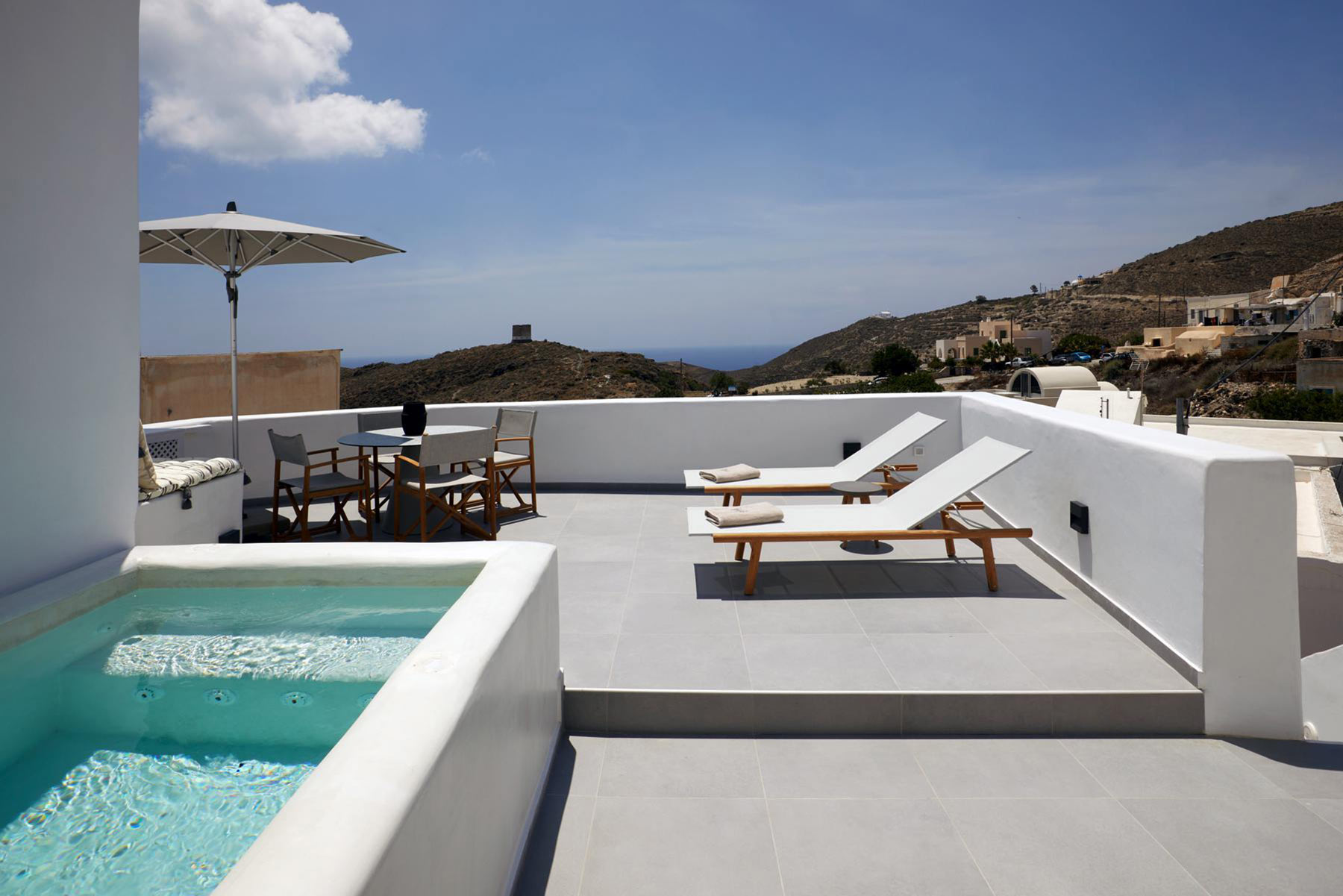 - Outdoor terrace with seating and sea view